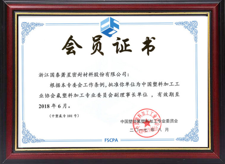 中國塑料加工工業(yè)協(xié)會氟塑料加工專業(yè)委員會副理事長單位