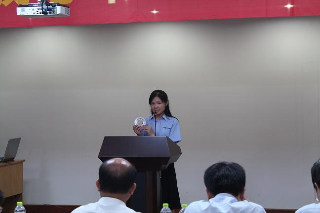 品管部鄭瓊從“1967年產(chǎn)的凍雞爪居然還在賣(mài)”的新聞引出產(chǎn)品質(zhì)量的重要性,希望“每一位國(guó)泰人都把我們的工作當(dāng)作事業(yè),始終把國(guó)泰的產(chǎn)品質(zhì)量放心中,用心的做好每一個(gè)產(chǎn)品,用心做好自己的本職工作”。